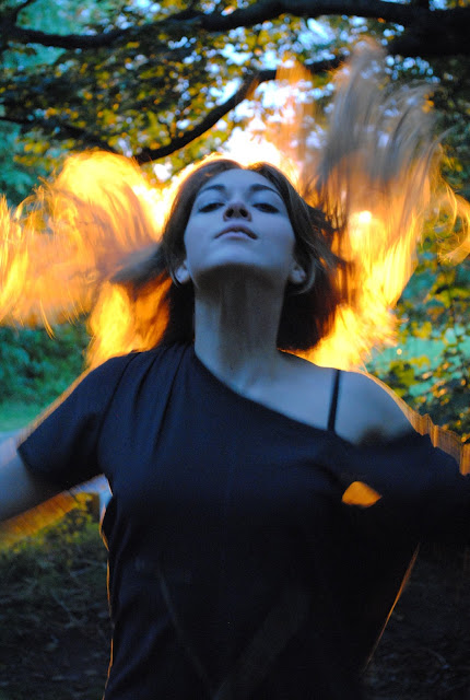 I actually took these pictures the same day as the 'Orange Tunnel' ones. They weren't planned, we just thought we'd warm up while we were waiting for the tunnel lights to go on but I'm really pleased with them! As the sun started to set a crazy orange light seeped through the branches of the trees so we ran to it and improvised, it made Megs hair look like it was on fire!